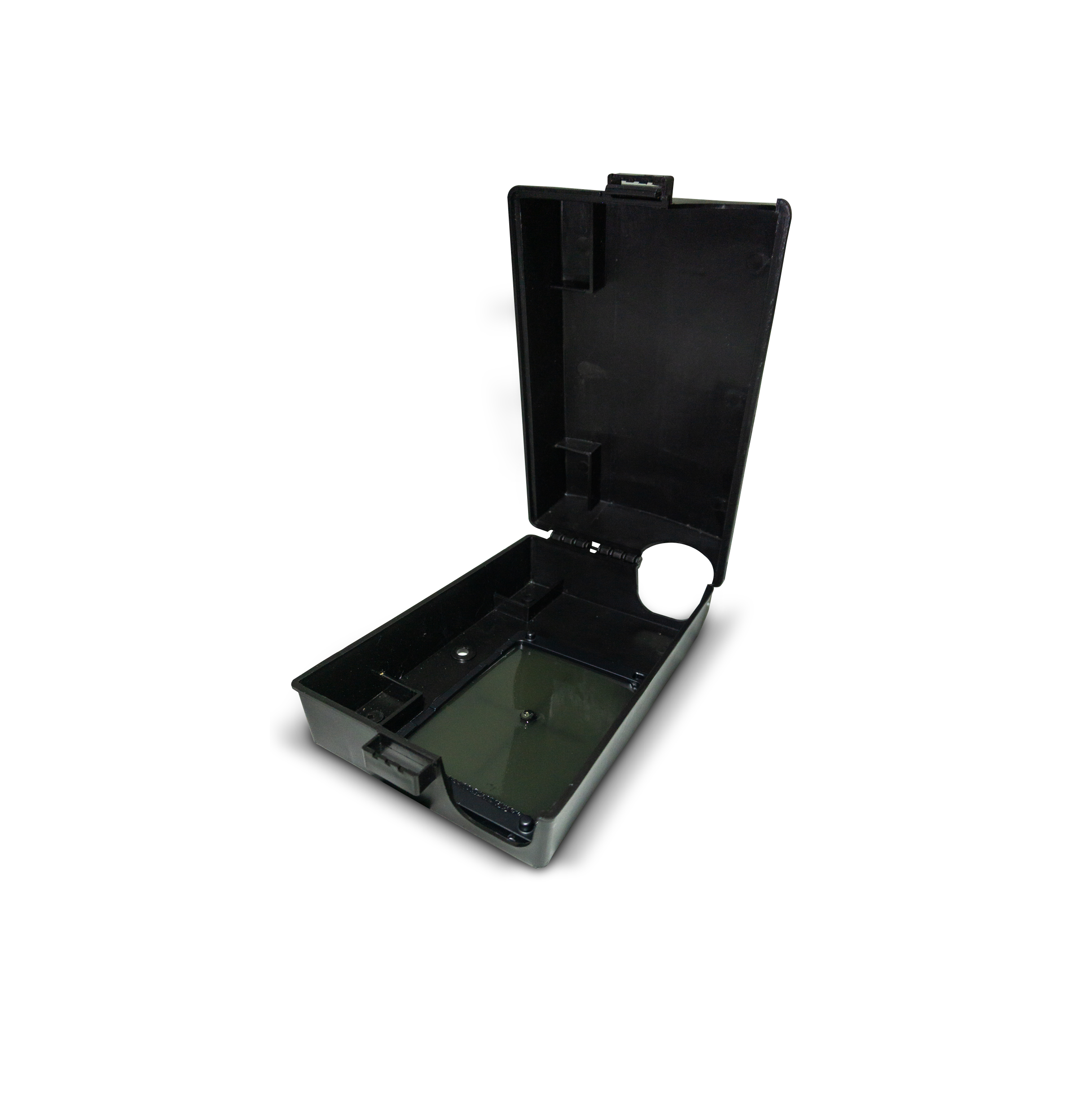 Dispositivo para el control y monitoreo de poblaciones de roedores, el cual permite la implementación de los métodos como Captura física con bandeja o lamina adherente, trampas de golpe con dientes, cebos químicos o cebos atrayentes. Su estructura en plástico de alta resistencia soporta hasta 90 kilos de peso.